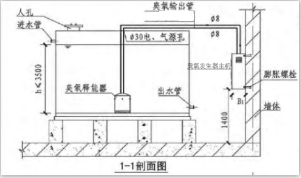 | 1 | 5立方 | 0.5小时 | 因水箱内的水白天不停的在流动,故水箱自洁臭氧消毒器运行工作时间设定在夜间消毒处理效果******。 |